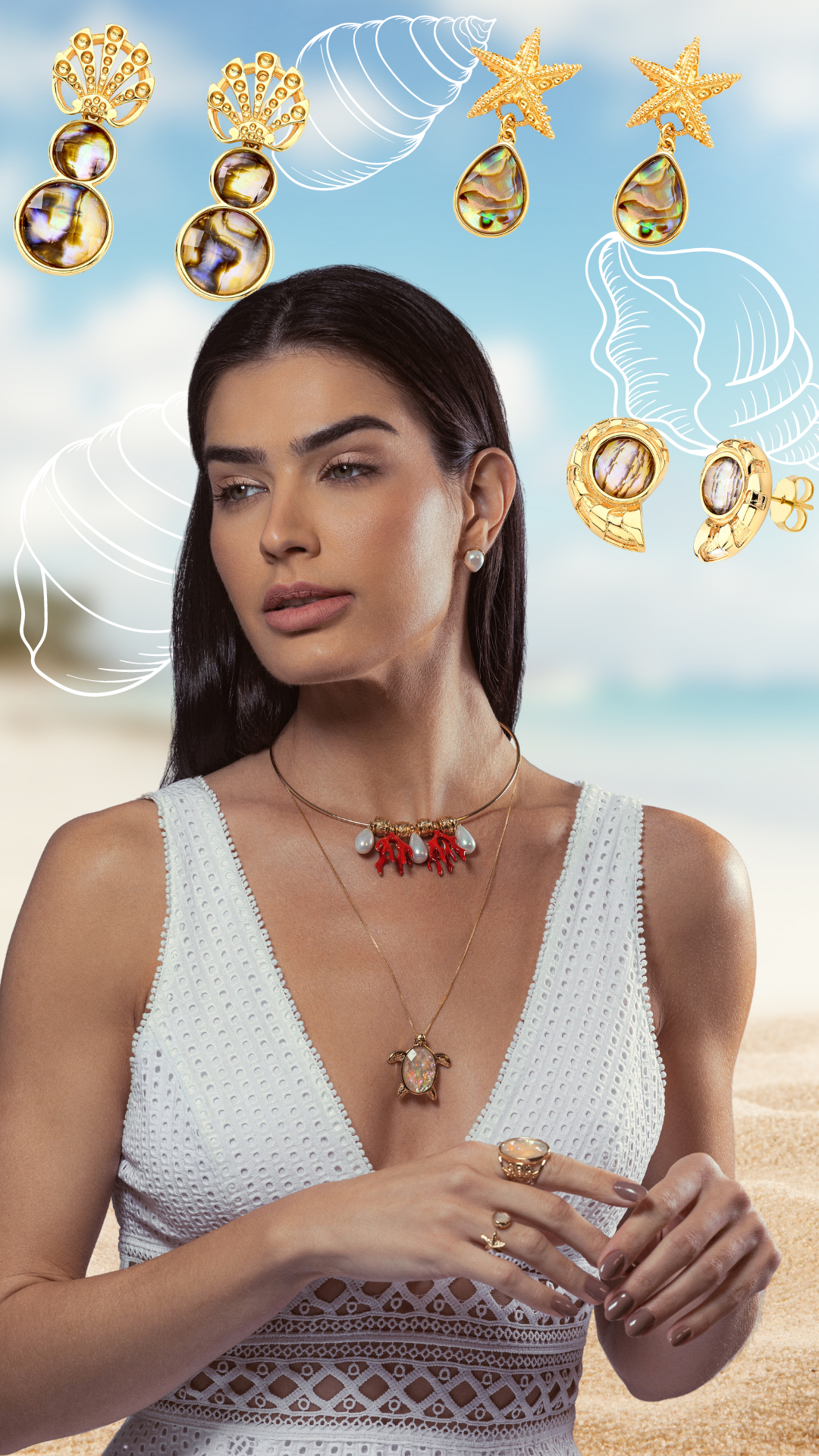 Sí. Para las joyas que ve en color dorado (con piedras semipreciosas; perlas y conchas), todas ellas están chapadas en Oro.