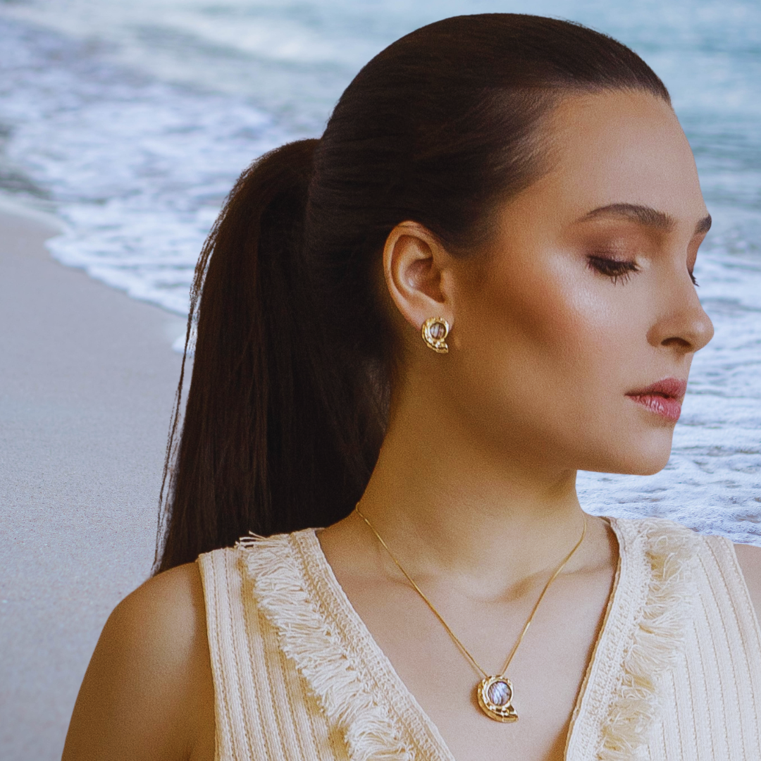 Escápate al paraíso con la Colección Tulum. Cada pieza está hecha a mano con abulón luminoso y fascinantes conchas de nautilo, capturando el espíritu vibrante del Caribe.